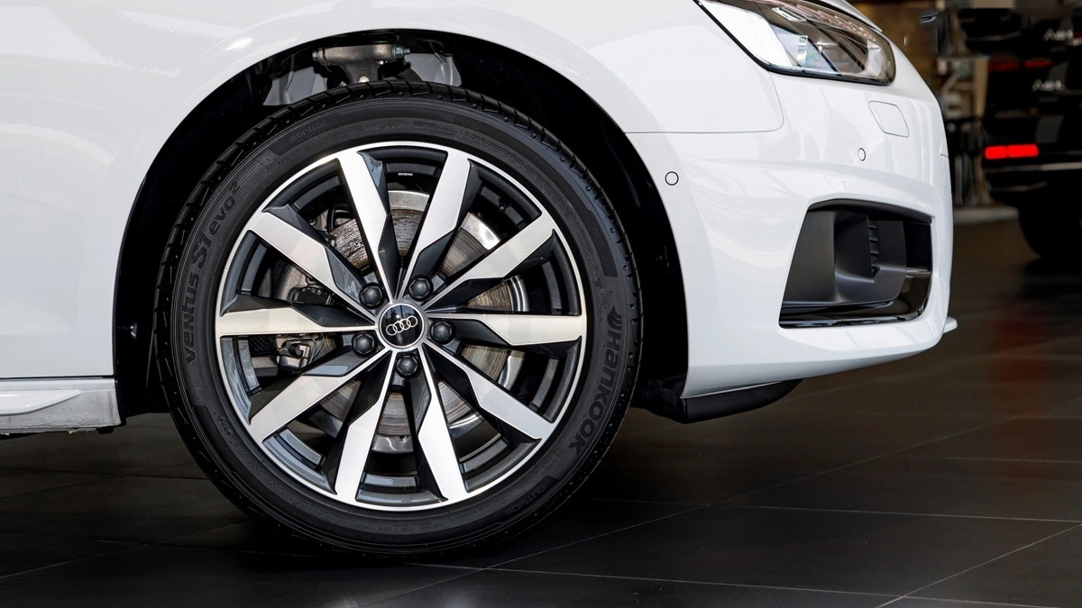 Audi A4 sử dụng bộ mâm hợp kim nhôm 18 inch thiết kế 10 chấu thể thao. Tông màu xám tương phản cùng bề mặt phay bóng tạo hiệu ứng thị giác mạnh, góp phần nâng tầm vẻ năng động của xe.