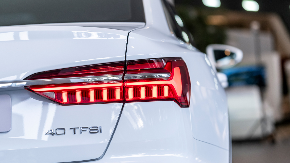 Thiết kế đuôi xe Audi A6 mang đậm phong cách thể thao, nổi bật với cặp ống xả hình chữ nhật được đặt đối xứng và tích hợp tinh gọn trong bộ khuếch tán sau. Cụm đèn hậu LED thiết kế liền mạch, nối với nhau bằng một dải trang trí mạ chrome, tạo nên diện mạo hiện đại và sang trọng cho phần đuôi xe.