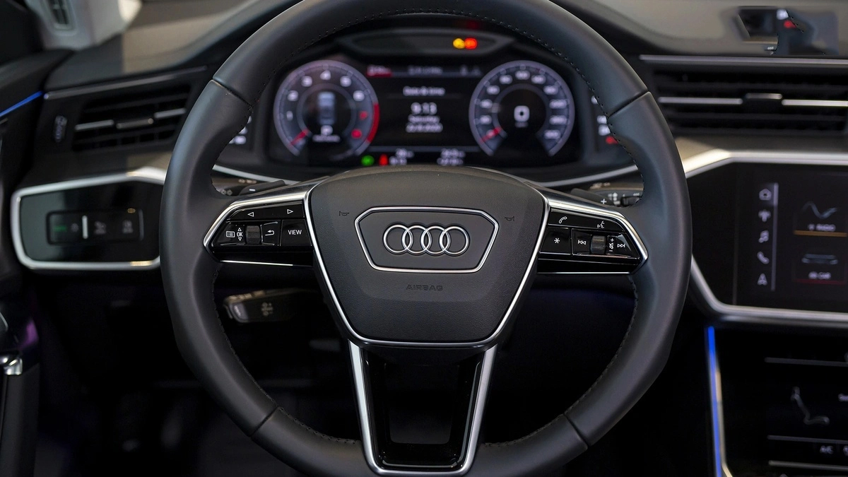 Vô-lăng 3 chấu bọc da cao cấp được tích hợp lẫy chuyển số và cụm phím chức năng tiện lợi, mang lại cảm giác cầm lái chắc tay và chính xác. Ngay phía sau là màn hình kỹ thuật số Audi Virtual Cockpit Plus với hai giao diện tùy chọn từ cổ điển đến hiện đại hiển thị sắc nét và dễ quan sát.