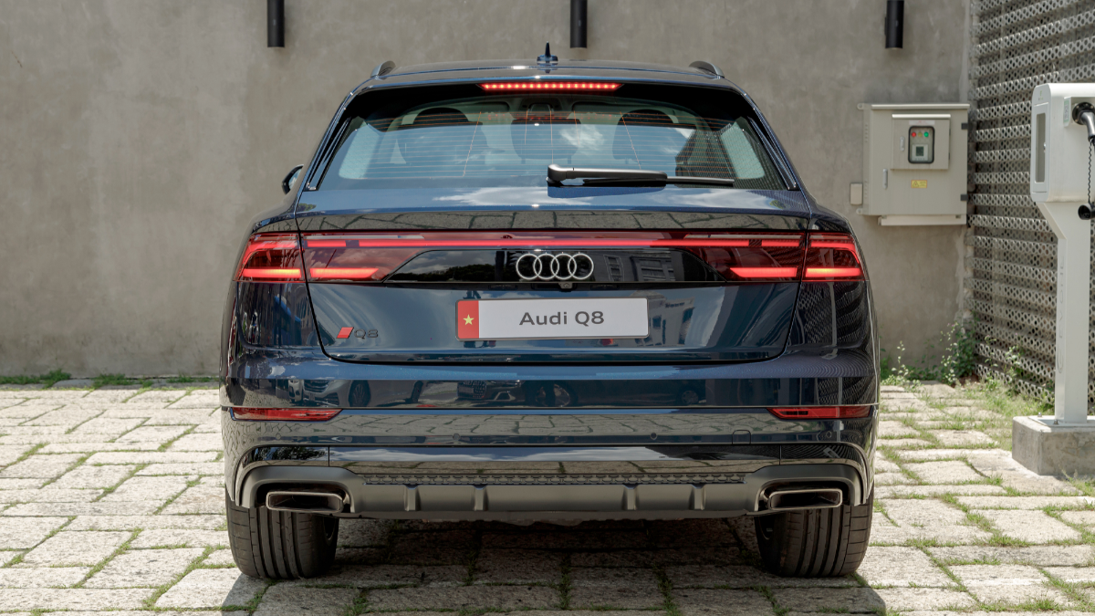 Bộ khuếch tán tích hợp ống xả thể thao, cùng logo Audi dạng 2D ở cản trước và sau, nhấn mạnh sức mạnh vận hành và phong cách hiện đại, cá tính của Q8.