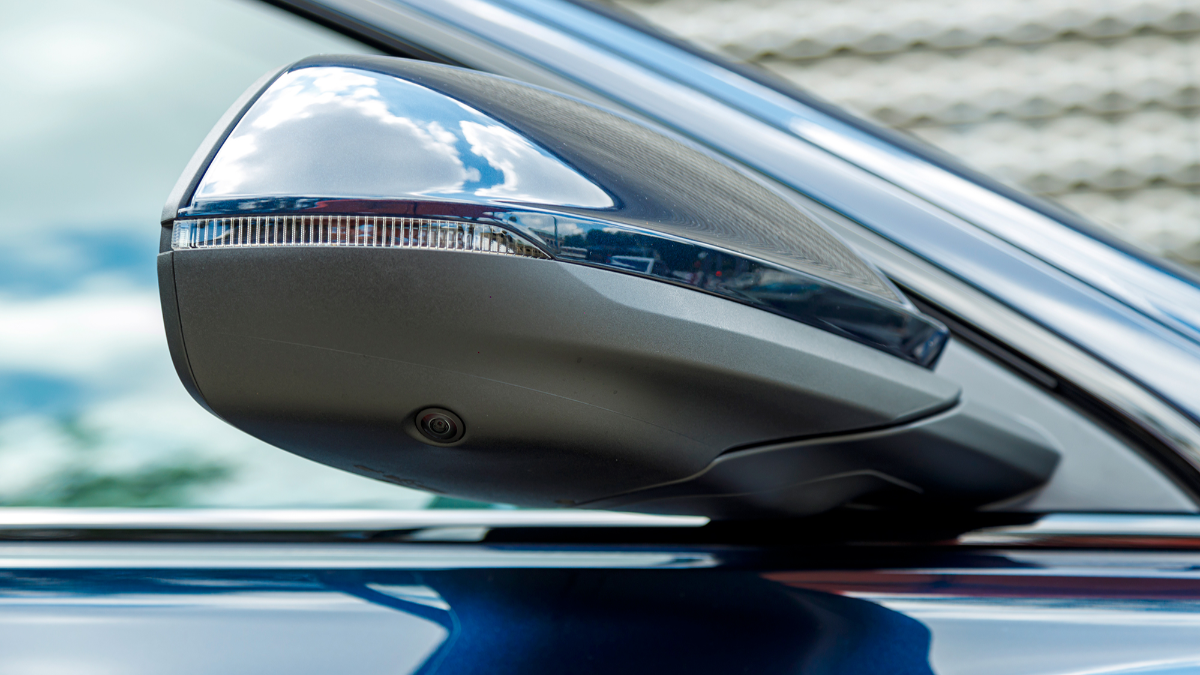 Gương chiếu hậu ngoài có chức năng chỉnh/gập điện, sưởi, chống lóa tự động, ghi nhớ vị trí và tùy chọn gương ảo thay camera, hiển thị lên màn hình OLED 7 inch, giúp cải thiện khí động học và an toàn.